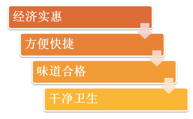 經(jīng)濟(jì)實(shí)惠在快餐要素里面排第一,它永遠(yuǎn)是快餐的最核心競爭力。相同條件情況下,你家快餐哪怕是比別人家便宜一元錢,帶來的客流量可能會(huì)有翻倍的效果。對于消費(fèi)者來說,提供相同產(chǎn)品的快餐商家之間,所競爭的就是那幾塊錢而已。因此,做快餐的老板,必須讓自己的菜品符合“經(jīng)濟(jì)實(shí)惠”這個(gè)要件。
