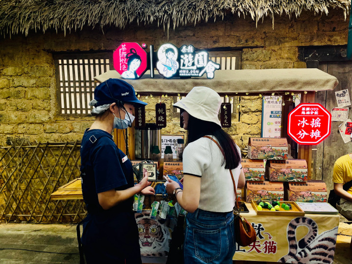 例如,在茶顏悅色的新零售門店“茶顏游園會(huì)”里,陳列了茶葉、茶杯、帆布包、雨傘、明信片、堅(jiān)果小零食等各類周邊,并且每隔一段時(shí)間會(huì)推陳出新。