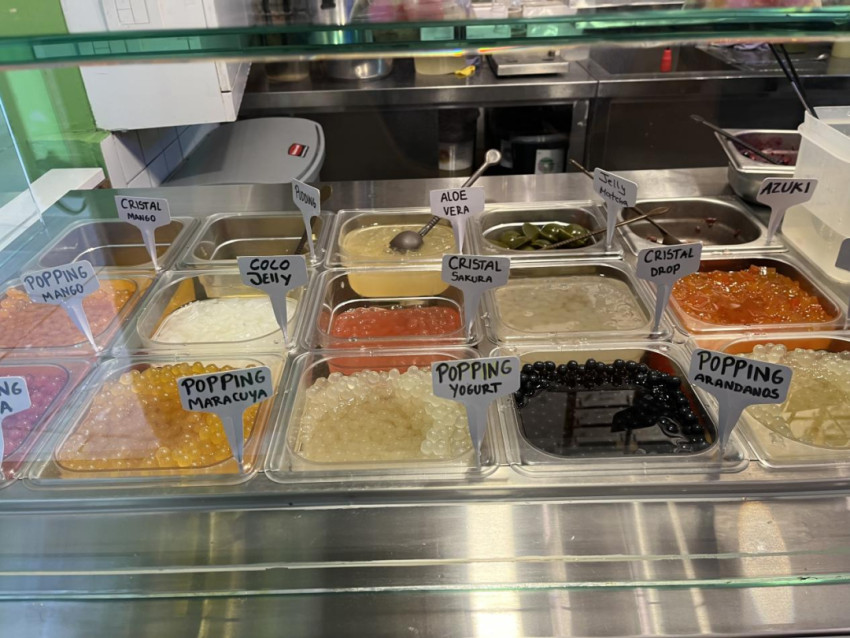 西班牙一家奶茶店五彩繽紛的珍珠小料