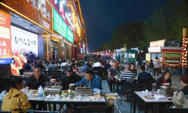 燒烤已經(jīng)成為不少當(dāng)?shù)厥忻衲酥镣獾赜慰途蹠?huì)的首選(央廣網(wǎng)記者 唐磊 攝)