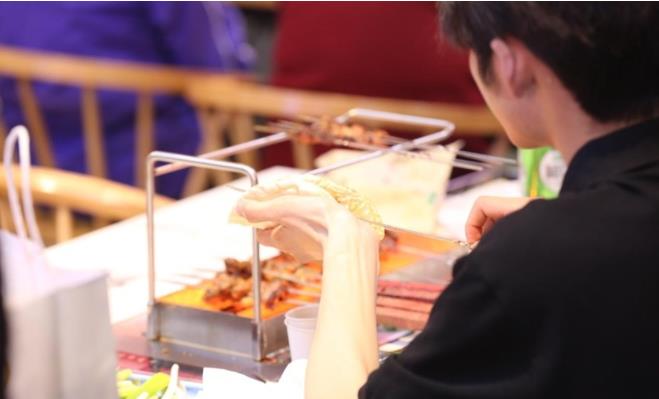 到淄博吃燒烤,怎能不體驗(yàn)一下“烤爐+小餅+蘸料”的特色(央廣網(wǎng)記者 唐磊 攝)