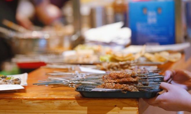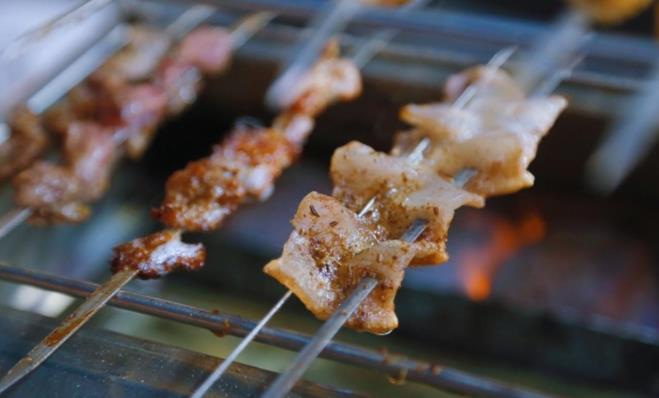 經(jīng)過(guò)初步烤制的肉串準(zhǔn)備端上餐桌(央廣網(wǎng)記者 唐磊 攝)