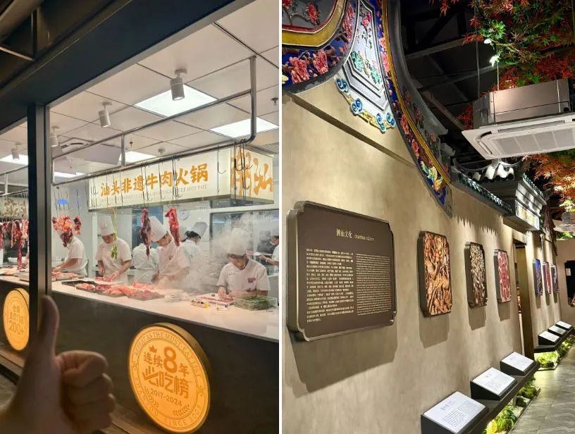 11月份,八合里在廣州開出全國首家非遺旗艦店,把潮汕非遺文化跟潮汕牛肉火鍋相結(jié)合,餐廳內(nèi)布景都來自潮汕非遺文化靈感,還有10個不同主題的特色包間,好比潮州瓷、潮汕樂器、潮汕建筑等,“一進(jìn)門還以為是非遺博物館”。