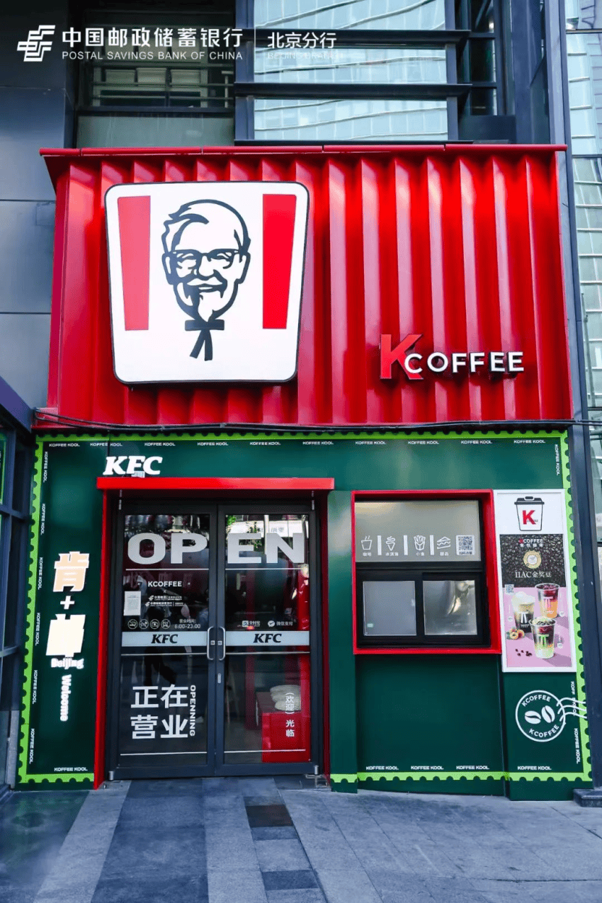 其實早在幾年前,郵儲銀行關(guān)聯(lián)公司中國郵政、中郵恒泰,已分別在福建、四川等地推出“郵局咖啡”、“郵氧的茶”等特色門店,跨界咖啡、新茶飲賽道。和之前的玩法不同的是,此次開出“肯德基支行”,是郵儲銀行親自下場操盤。
