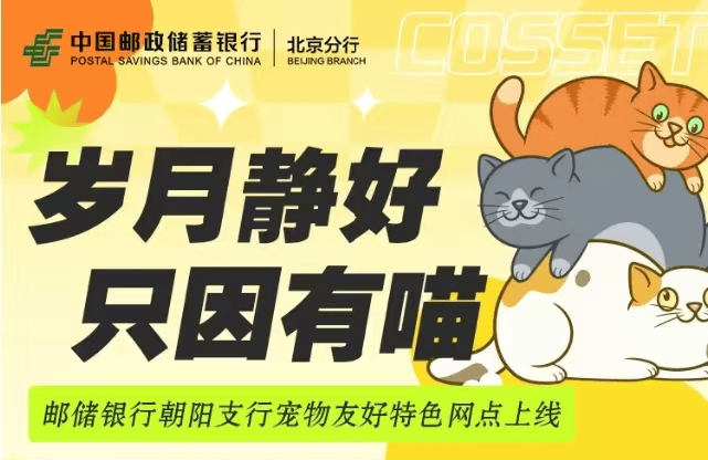 除了“紅娘支行”、“相聲支行”,郵儲銀行朝陽支行還在2024年7月上線了“寵物支行”。該支行網(wǎng)點主打特色服務(wù)、公益活動,不僅提供寵物VIP客戶專區(qū),還提供寵物免費寄養(yǎng);組織愛寵活動,邀約貓貓作為支行常駐嘉賓,與客戶零距離接觸;定制附有寵物圖像的專屬銀行卡;與北京愛它動物保護基金對接,舉辦寵物展,科普寵物知識等。