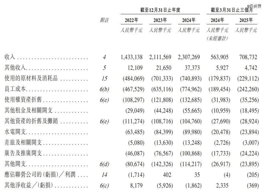 每年上千萬顧客撐起了巴奴的營收。招股書顯示,2022年、2023年及2024年期間,巴奴分別實(shí)現(xiàn)營收14.33億元、21.12億元、23.07億元;今年第一季度營收從2024年同期的5.64億元增加25.7%至7.09億元。