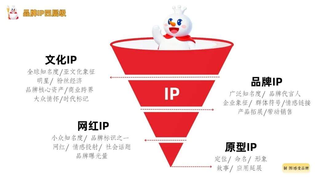 按照影響力來劃分市場上的品牌IP,大概可以分為四個層級:原型IP?網(wǎng)紅IP?品牌IP?文化IP。
